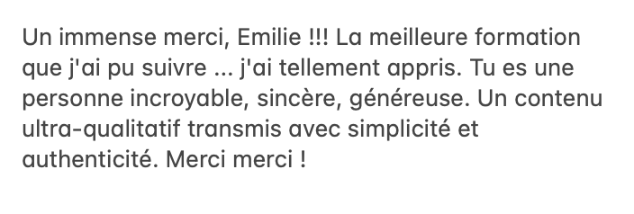 Émilie, tu incarnes celle qui a trouvé sa mission et qui l’a vit pleinement avec justesse.