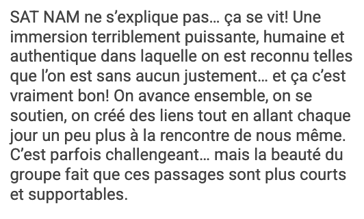C'est concret, pratique, et totalement accessible. Par contre, oui, c’est ésotérique et SAT NAM requiert d’avoir une véritable envie, curiosité de s’ouvrir à plus grand.